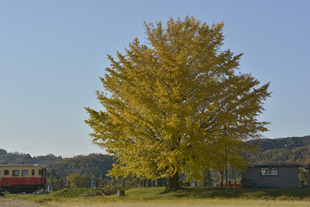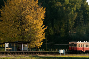 房総半島の中央部をレトロな列車が走る小湊鐵道。その駅のひとつ、「上総久保駅」には大きなイチョウの木があり、シーズンともなるとたくさんの写真愛好家が集まります。