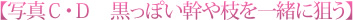 写真Cは葉っぱだけを、写真Dは黒っぽい幹も同時に狙いました。