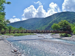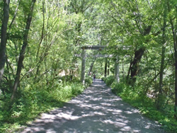 帰路は左岸ルートで。こちらは木橋などが多く架けられた景色のよい遊歩道です。ただし、アップダウンが多く、ところによってはかなりきつい坂も。しかし、帰路は下りとなるので苦になりません。