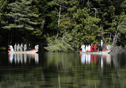 毎年10月8日に「穂高神社奥宮例大祭」、別名「お船祭り」が行われ、大勢の観光客を集めています。龍頭鷁首(りゅうとうげきしゅ)の船が明神池に浮かび、山の安全を祈願する平安朝の神事です。
