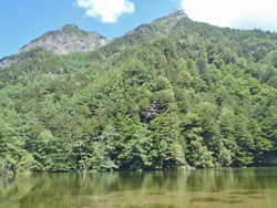 明神池は上高地のバスターミナルより梓川を上流方向に1時間ほど歩いた場所にあります。