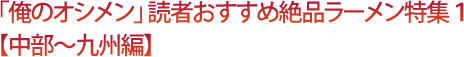 お待たせしました。北海道~首都圏編に続き、「俺のオシメン」の中部~九州編です。この地区にはどんなラーメンが待ち受けているのでしょうか。ドライブ好きにお願いしたアンケートで名前があがったラーメンを紹介します!