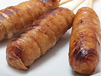 テイクアウトコーナーにある人気者がこれ。ご飯に味付け豚肉を巻き、串にさして焼いたワンハンドメニューです。注文する際は、「アツアツをください」のひとことも忘れずに。豚肉とご飯がよく合う、気軽に食べられるおやつフードの決定版でしょう。