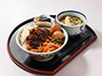 全国でも珍しい、ジャージー牛を食用に飼育しているのが蒜山高原です。ジャージー牛の「かっぱ」と呼ばれる希少部位を使用したアツアツ丼。かっぱはホルモンに似た食感で、噛めば噛むほど味が出ます。そのほかにもジャージー牛のハンバーグもおすすめ。