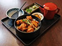 ご飯の上に特製の甘めのタレをからめた唐揚げが載っています。最初はそのままごはん茶碗にとって召し上がれ。そして、2杯目は伊達鶏入りの特製スープをかけていただく。あっさりとしていて、ほかほかの唐揚げとご飯を食べる満足感。たまりません!