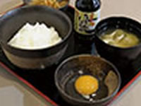 南魚沼市は全国的に米どころとして知られ、上質なお米は大人気です。このメニューは南魚沼市塩沢産のコシヒカリをふっくら炊き上げ、マイナスイオン水で育った鶏の「魚沼赤たまご」と一緒にいただくメニュー。アツアツご飯がこんなにおいしいなんて!