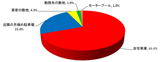 これによってわかるのは、自宅車庫が7割弱と多いこと。