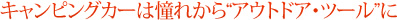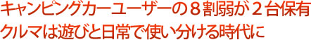 キャンピングカーがアウトドア派の旅や遊びの“ツール”として必需品になりつつある傾向が見えます。その証拠が通常使用するクルマとキャンピングカーの「2台持ち」の増加です。