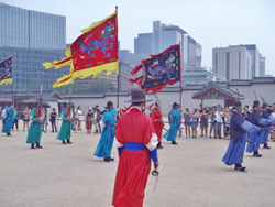 10時、13時、15時と通常3回行われる「王宮守門将交代儀式」に合わせて訪れると、周囲は観光客でいっぱいでした。聞き耳を立てると韓国人と中国人観光客が多いみたい。日本人観光客は明洞でショッピングでしょうか?