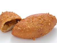 関西に目を向ければ山陽自動車道三木SA(上り線)に注目です。ここは阪急阪神第一ホテルグループが事業展開しており、ベーカリー&イートインコーナーもそのひとつです。 人気No.1の「黒豆パン」も美味ですが、三木市は酒米「山田錦」の里でもあるために、その酒粕を使用した「山田錦の酒粕あんぱん」や「ピロシキ」も食べてみたい逸品です。写真は酒粕あんぱんです。かたちも個性的ですね。