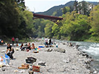 ひとことメモ:紀伊半島のほぼ真ん中、吊り橋から1㎞上流にある川沿いのキャンプ場。基本的にフリーサイトのために野営気分を味わえる。五右衛門風呂あり。ペットOK。