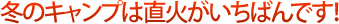 直火にテント泊が冬キャンプの王道ではと思ってしまう編集室です。