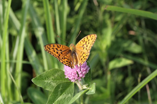 画面の真ん中にピントを合わせ、花に飛んできた蝶が中央に来たときに、そのままシャッターを切ってしまった例(写真E)。