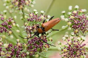 上からそのまま撮ってしまった写真Hに対し、写真Iは横から撮ることで少し離れた緑をぼかして背景にし、昆虫を浮かび上がらせました。ちょうど、触覚が立っていたので、その端が画面一杯に入ることを計算してシャッターを切りました。