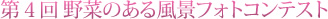 日々の生活の中から「野菜」をテーマにした写真を募集しており、家庭菜園の模様や野菜を使った料理、野菜と触れ合う人々などの明るくほのぼのとした作品が対象です。