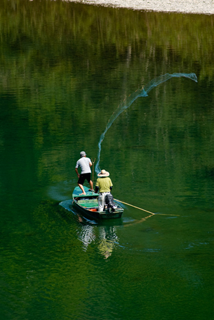 もちろん条件次第では水面に波のない穏やかな場所であることや、時間帯(光線状態)、写真A/Bで言えば漁師が着ている服の色など、その違いによって雰囲気が異なります。