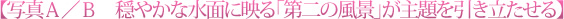 しかし、こうした条件が整っているとしたら、写真Bのように水に映った光景を写真に活かそうと撮影ポジションを探っています。
