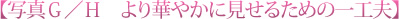 写真Gは左下に影の部分があって重く感じたので、あえて水辺をあまり入れず狙ってみました。明るい印象にはなりましたが、風景としてはまだまだ単調で平面的な感じです。