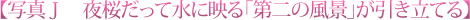 最後に。春になれば夜桜スポットを巡る機会もあるかと思います。夜桜を美しく際立たせるにも水に映った「第二の風景」が役立ちます。