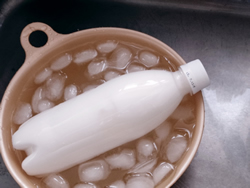 塊のできていない子のペットボトルに、トロリとした白い液体を入れるのだ。魔法の液、それは実は生クリーム。
