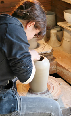 おいしいものを食べながら、気ままに陶器を眺め、体験教室で自分だけの茶碗などを作る。