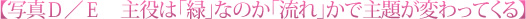 それに対し写真Eは緑に覆われた周囲の切り立った崖が主題となり、そこから水が湧き出しているようなイメージになっています。