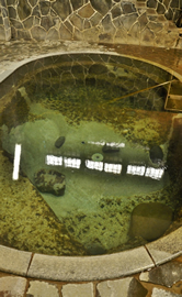 そして、この宿で最も注目すべきは、自噴する天然岩風呂がいまも残されており、自噴泉としては日本一の深さを誇る浴槽になっているということだ。