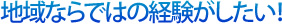 この10年くらい「安心・安全」「地産地消」「地域再発見」などの言葉がずいぶん聞かれるようになりました。発信源は地方自治体で、それぞれの土地の魅力、安全性を知ってほしいと使い出したのです。そして、それはおもしろい“体験”にも繋がっています。
