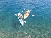 海上での釣り、アーチェリー、バトミントン・テニス、カニ獲り、そしてカヌーで海の冒険が楽しめます。海といえども湾内なので波はほとんどなく初心者でも安心。子どもと一緒に2人乗りも可能。海からの絶景を楽しんで!