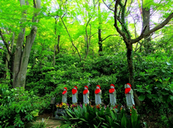 総門から見て境内の右側は講堂などがあり開かれていますが、一転、左側は多摩丘陵の自然が残されています。四季の道と呼ばれる山道や、その周辺では自然歩きが楽しめます。
