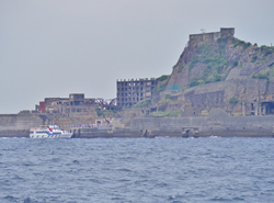 高島からさらに15分ほど進んだところに軍艦島がある。ツアー船用に設置された桟橋から上陸する。