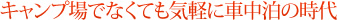 「もっと格安に郊外や旅先での宿泊ができないものか」というのが、ドライブ好きやアウトドア好きの悩みでしょう。宿泊費が格安に抑えられれば、そのぶんおでかけ回数も増えるというものです。
