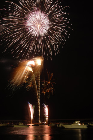 ただし、写真Bのように花火だけを撮ればいいわけではありません。周囲の地物も大切な要素になります。