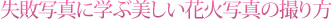“花火写真”といっても実にいろいろな要素があって、それらをクリアしなければ美しい写真にならない…ということがおわかりいただけたと思います。