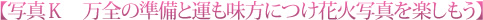 万全の準備、場所取り、そして花火の光跡を予測しフレーミングして、その時を待つ。