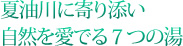 男女別の内風呂「白猿の湯」「小天狗の湯」以外は、すべて夏油川沿いに点々と並んでいる。