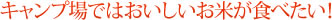 しかし!! キャンプ場のサイトに目を向けると、地域の名産米を楽しんでいる人をあまり見かけません。