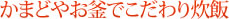 これから訪れる新米のシーズン。今年は飯盒やお釜を使って炊飯そのものを楽しみませんか?