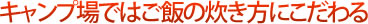 キャンプ場だからこそ、炭や薪を使ってご飯を炊くことができるのです(直火禁止のキャンプ場では焚き火台などを使うこと)。