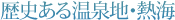 日本有数の温泉地として知られる熱海温泉は、ナトリウム・カルシウム-塩化物・硫酸塩温泉(低張性・弱アルカリ性・高温泉)で、源泉総数は500本を超え、その湧出量は毎分1万8000Lを誇ります。