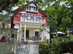 これらを見物してひと汗かいた後は再びデ・ラランデ邸へ。テラスと邸内は「武蔵野茶房」というカフェになっている。まるで当時に招かれた客のような気分で、洒落た室内でコーヒーやドイツビール、夏季はかき氷が味わえるのだ。
