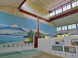 江戸東京たてもの園にある銭湯はとても立派だ。昭和4年に足立区千住にできた「子宝湯」が展示されているが、玄関上の七福神の彫刻、高い天井、そして富士山が描かれたみごとなペンキ絵と、どこをとっても圧倒される。まさに、子どものころからドラマやマンガで見ていた“これぞ銭湯”が小金井公園の一画に残っているのだ。