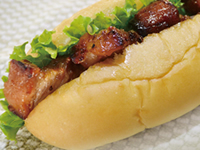 「腸詰屋」は軽井沢で人気のハム・ソーセージショップです。そのソーセージをその場で焼き、自家製パンにはさんで提供しています。このSA下り線だけの人気商品です。