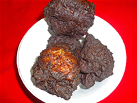 誰もが驚くその黒さ!その秘密は椎茸にひじき。地元の関市が町おこしで開発、地元産の椎茸と海の幸を融合。関からあげ学会の名物になりました。