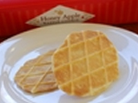 前沢SA上り線のオリジナル商品が密かな人気です。江刺リンゴと前沢産の蜂蜜をマッチングさせて、ほんのり甘い、味わい深いサクサクのワッフルクッキーができました。