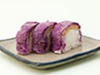 新潟には菊を食用に利用する食文化があります。そして、新潟名産といえばお米に佐渡銀鮭。これらが融合して誕生したのがこのお寿司、見た目も華やかです。