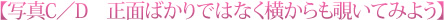 最初は正面気味に(写真C)、次に頭のほうへまわり込んで撮影してみました(写真D)。