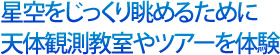天文台の天体観察体験と同様に、近年人気上昇中なのが「天体観察ツアー」だ。