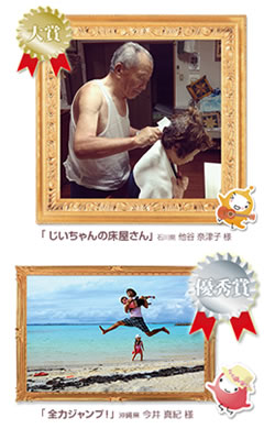 家族がほっとくつろいだ瞬間や、家族の元気いっぱいな風景の写真、家族の「すごい!」や「おもしろい!」をそのまま撮影して応募してください。