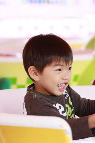 いい表情で遊んでいたお子さんでも、ぎこちなさや不自然さが伴ってしまいます(写真A)。ポイントは声をかけるのではなく、一連の動きの中からいい表情をした瞬間をとらえることです。こうすることで目が輝きを放ち、表情も生き生きと見えてきます(写真B)。
